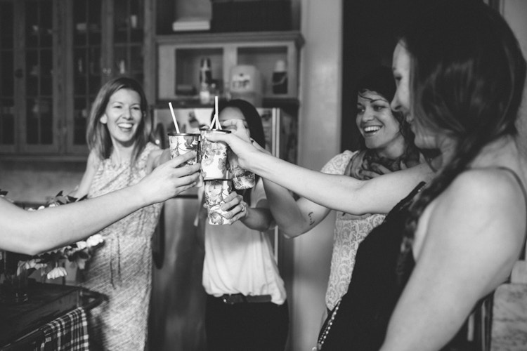 It's always a bit of a risk when you throw a party for a group of people who don't know each other. There's the risk of it feeling forced or unnatural, or having to endure surfacy conversations. Not with this bunch! Within moments of everyone arriving, we were out on the terrace, drinking Bourbon and ginger beer cocktails that Joy whipped up, laughing hysterically over the voices we give our pets, and trying to do our best diva-ish Sophia Vergara impressions. (Which of course looked ridiculous and made for more laughter.) We snacked on watermelon-mint-feta skewers and marinated olives, and at one point Joy's cat Tron snuck up on the table and tried to swipe a few.