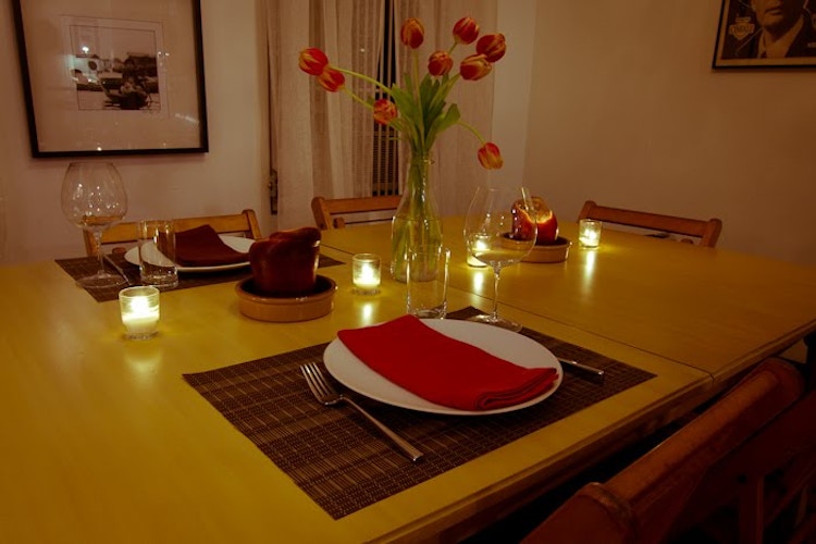 So for this Valentine's Day, I want to do something special for him. I have no interest in going out to dinner on V-Day with all the cheesy, pre-fixe "aphrodisiac menus" and couples who look, well, bored. Instead, I plan to make a cozy dinner diner à deux at the yellow table. There is nothing more romantic to me than a table set – with fresh flowers and lots of candles – for two. It completely transforms the ambiance of the apartment. Brandon doesn't cook at all, which is fine by me, because I've already got the menu planned!