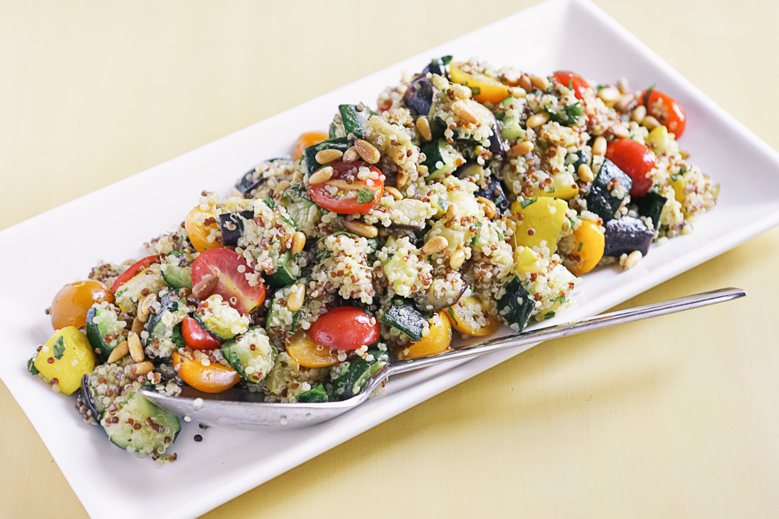 Twelve years later, I'm still a big fan of this salad. I've tweaked the recipe a bit to suit my tastes - I've swapped cherry tomatoes for whole (though either way is good), gotten rid of the green pepper (which I don't really like), and added fresh mint in lieu of dried oregano. Sometimes I toss this salad with chilled quinoa or farro or Israeli couscous, to make a heartier main dish salad. I make this all the time in the summer, as a side salad with grilled chicken or fish, or as a light lunch with some toasted pita bread. I'd love to go back to Greece one of these days, but for now, I'm content to enjoy a taste of it at home.