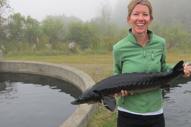 And last, but not least: the fish story! I visited Breviro, a local caviar producer who brought a rare variety of short-nose sturgeon back from the brink of extinction. They now breed and grow the fish in an eco-friendly facility in St. Andrews and make top-notch caviar – only available locally in St. Andrews on restaurant menus (such as Kingsbrae Arms). The owner asked me if I'd like to hold one of the fish. I did a double take and said, "Um no, that's probably not a good idea." But before I got the words out, there was a 20+ pound wriggling fish in my arms and in a matter of seconds, it had flopped its way onto the ground! Nonplussed, he picked the fish up so I could get a quick photo, and then threw the fish back in the water. Now I realize why I've never been a great fisherman (er, woman)...