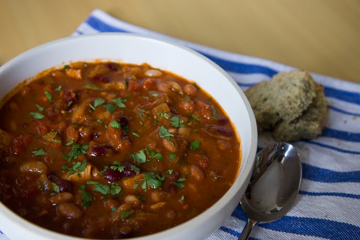 This is a healthy adaptation of my favorite Thanksgiving Day dish growing up: my mom's Brown Rice. I took out the stick of butter and the cans of soup, and substituted farro for the rice and fresh mushrooms for canned. The end result? Still intensely flavorful–without feeling so heavy.